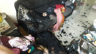 【記者盧于農報導】新北大道七段的伊吉邦社區大樓,十一月十七日上午發生一起客廳沙發燃燒意外。位於十二樓的一間租屋處發生火警,消防人員接獲社區守衛報案,於十分鐘內趕到。屋內並無任何人,火勢則被高樓火災灑水設備控制,燃燒大約客廳一坪的空間,沒有延燒至其他住戶,整起火災無人員傷亡。