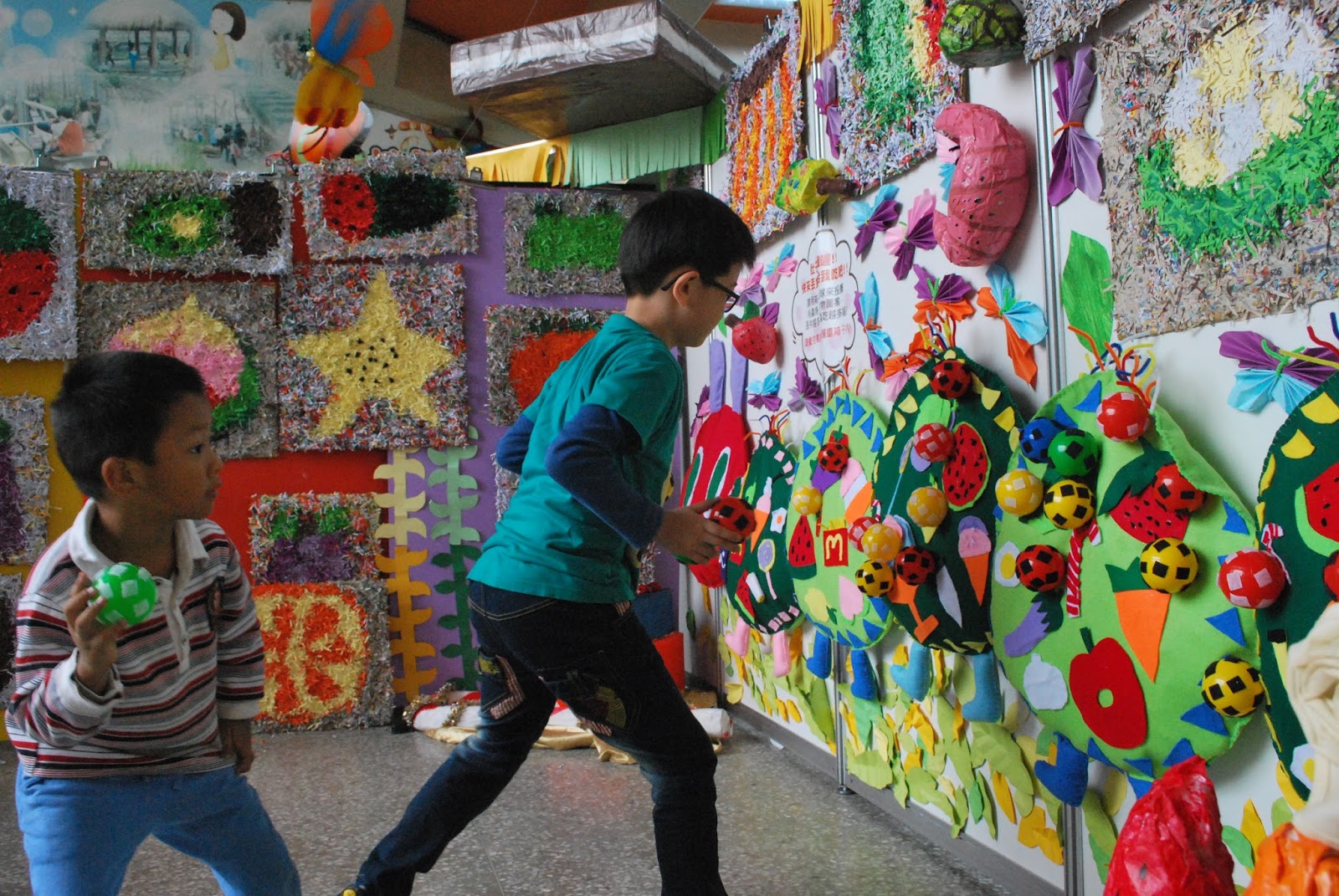 王婕嫣說,藝術品的製作由各年級學生分工完成。例如三年級學生繪製黑白的昆蟲圖案,這些圖案由學生自由想象,並非對照真實圖片。學生站在毛毛蟲寶寶的角度去創作,他們不認識各種昆蟲,也無法辨識顏色,因此完成的作品形態多樣,展現學生想像力。此外,許多展品的製作都使用回收材料,如水瓶、廢報紙,完成廢物利用。