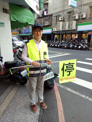 【記者張展嫣報導】走在中港國小前的中港一街,會發現中泰里里長郭樹琳穿著一身亮黃色的導護服,拿著指揮棒站在十字路口維護學生上、下學的安全。郭樹琳不久前加入中港國小導護志工隊,在每個星期二、五放學時擔任中港國小導護爸爸。
