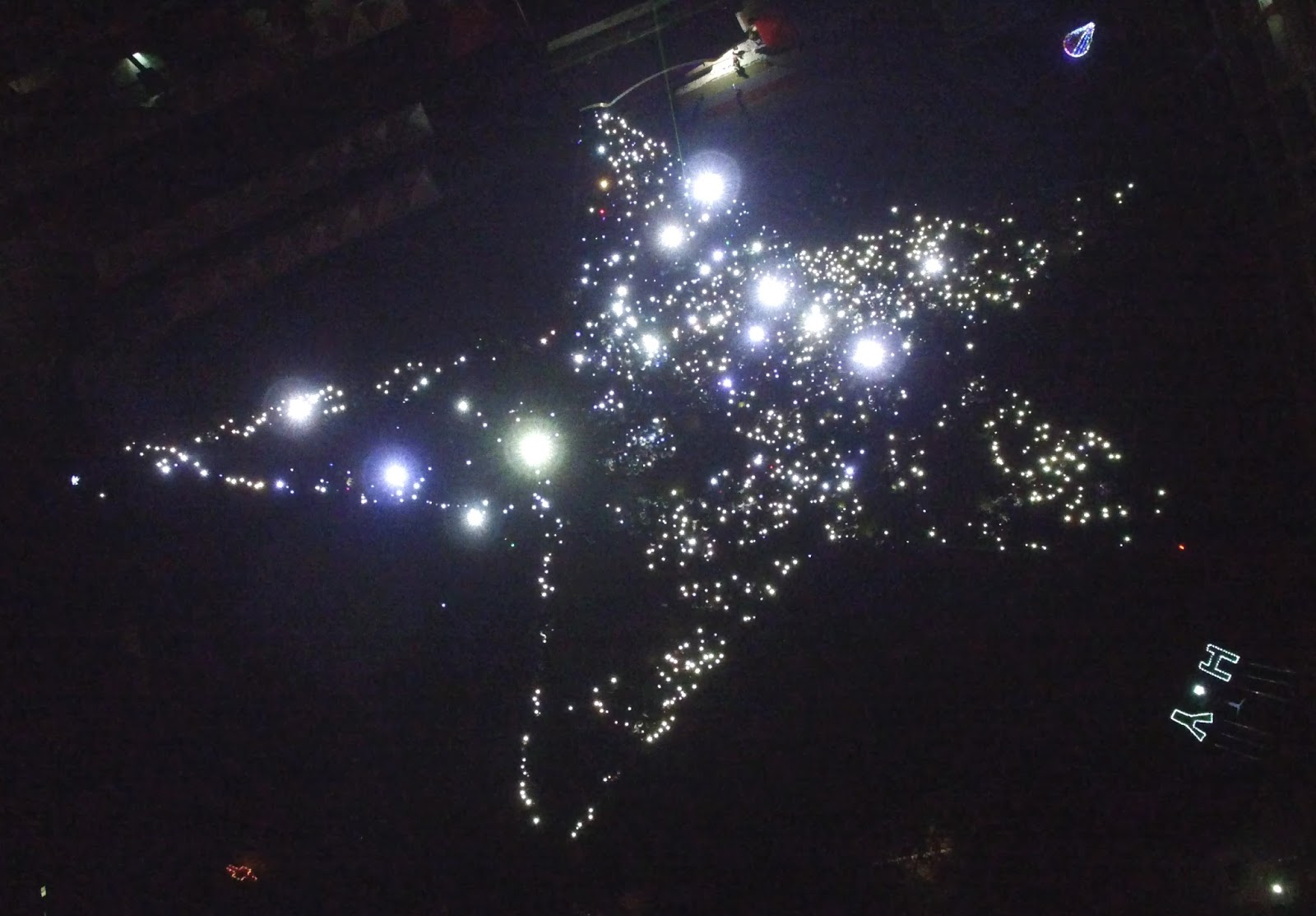 【記者徐安辰報導】天主教恆毅中學十一月卅日為耶誕節點燈儀式特別設計創新的活動,首次由兩千七百名學生手拿發光的LED燈、手電筒或手機,在活動倒數時於操場上散發出強烈的光芒。