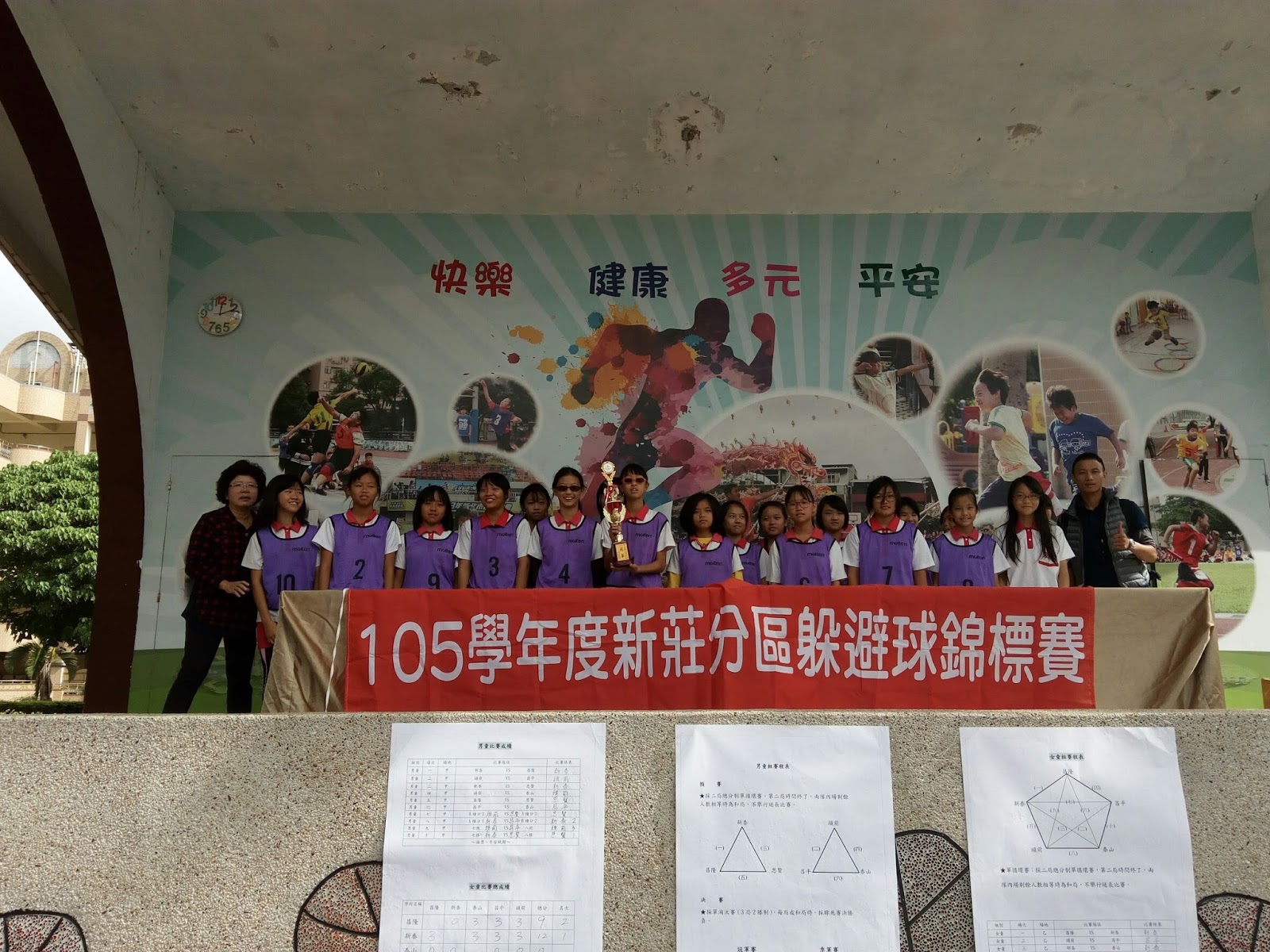【記者李佩筠報導】 新泰國小躲避球隊參加一〇五年普及化運動新莊分區國民小學躲避球選拔賽,榮獲女童組冠軍及男童組亞軍,並取得市賽的參賽資格。