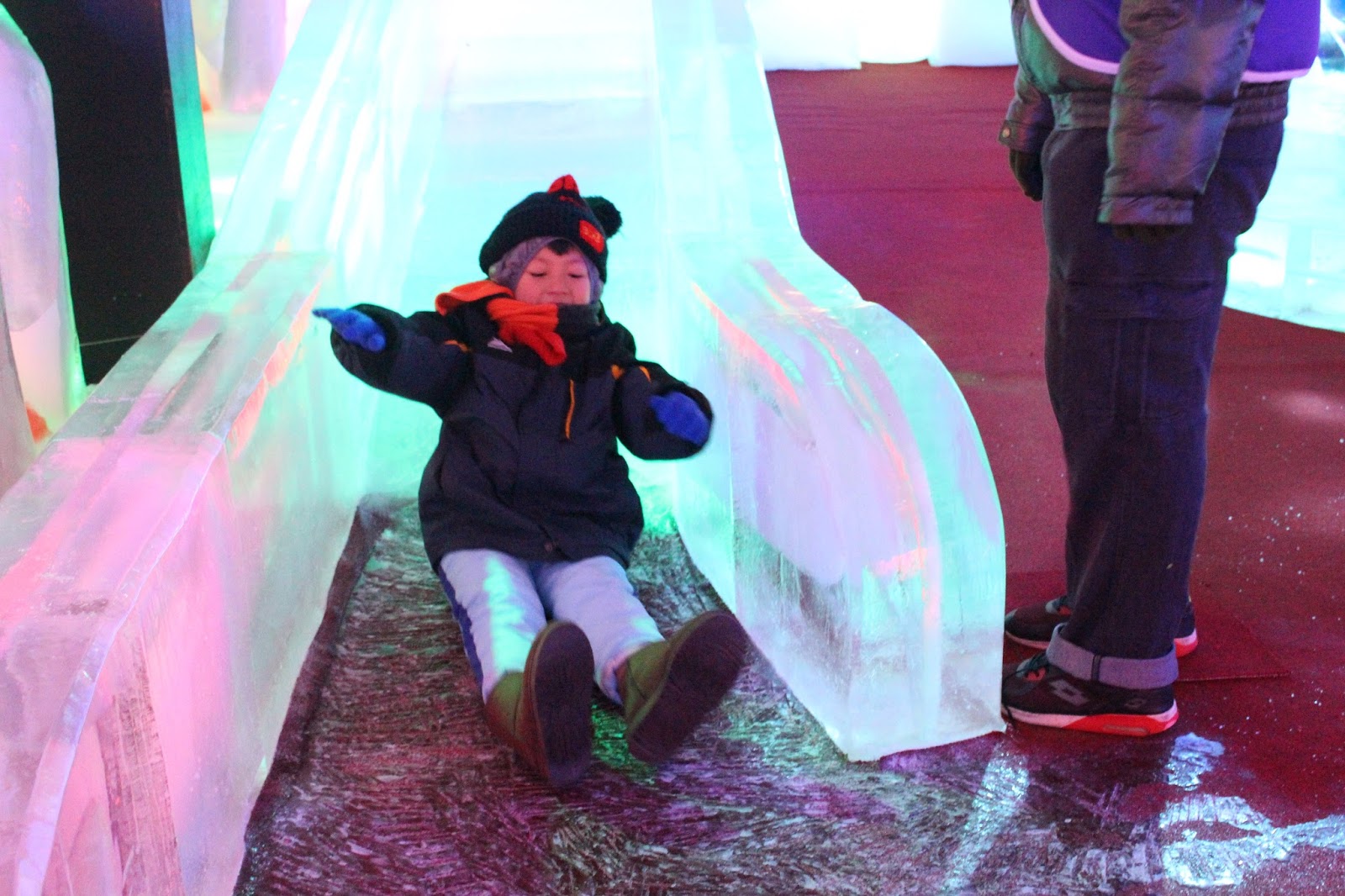 ▲冰滑梯吸引兒童體驗滑冰快感。
