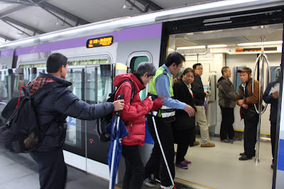 廖先生專程從台北天母帶太太來試乘,他說,第一次搭機場捷運很新奇,也認為多了這個便利的交通建設,讓沿線的新莊、泰山地區有更多發展的可能。