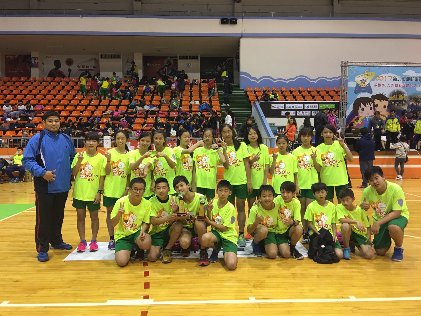 ▲裕民國小體育班,十人十一腳參賽者,於參賽會場合影。