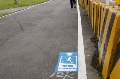 ▲新北河濱設置慢跑路線及公里標示,方便慢跑族訓練自己。