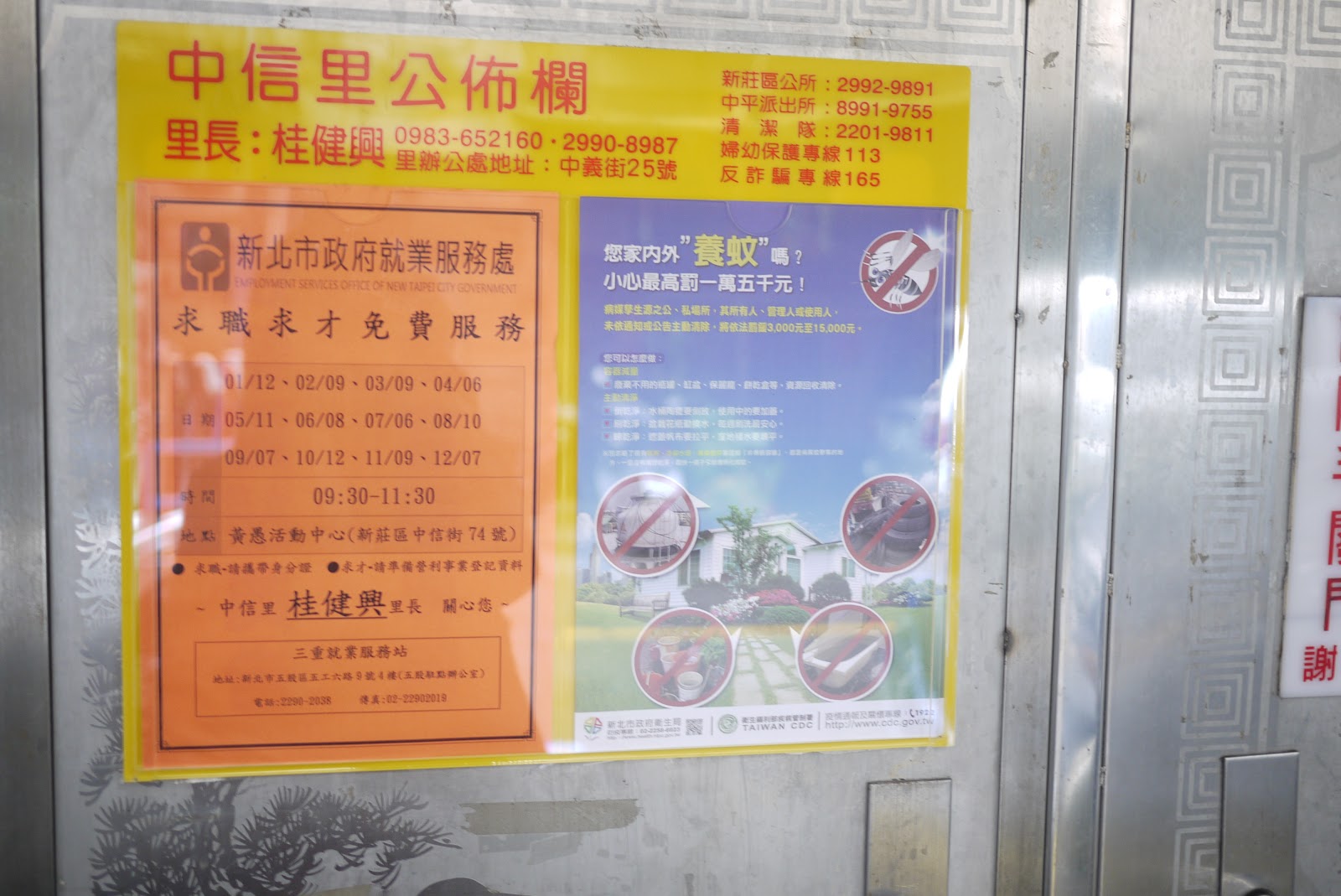 【記者周玉陵報導】中信里設置新版公布欄,選用醒目顏色及加大字體,希望吸引里民注意,避免遺漏政府公布等重要訊息。公布欄設置以中信街為起點,目前陸續進行。另外也汰換老舊公寓照明燈,改採省電的LED燈泡,確保民眾夜間活動的安全。