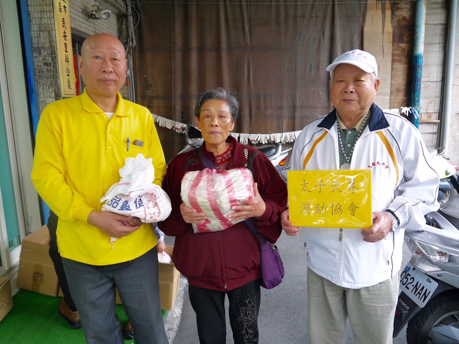 【記者許悅報導】太子天尊濟助協會三月廿一日上午到民安里發放二百斤白米、麵條等物資給中低收入戶、身障及社會邊緣人,減輕他們生活上的負擔。協會自去年十一月開始,每個月定期至新莊、泰山等地發放愛心白米,希望能幫助弱勢家庭。