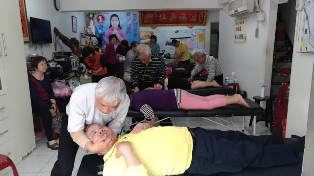 ▲長者在光榮里辦公室享受免費推拿服務。