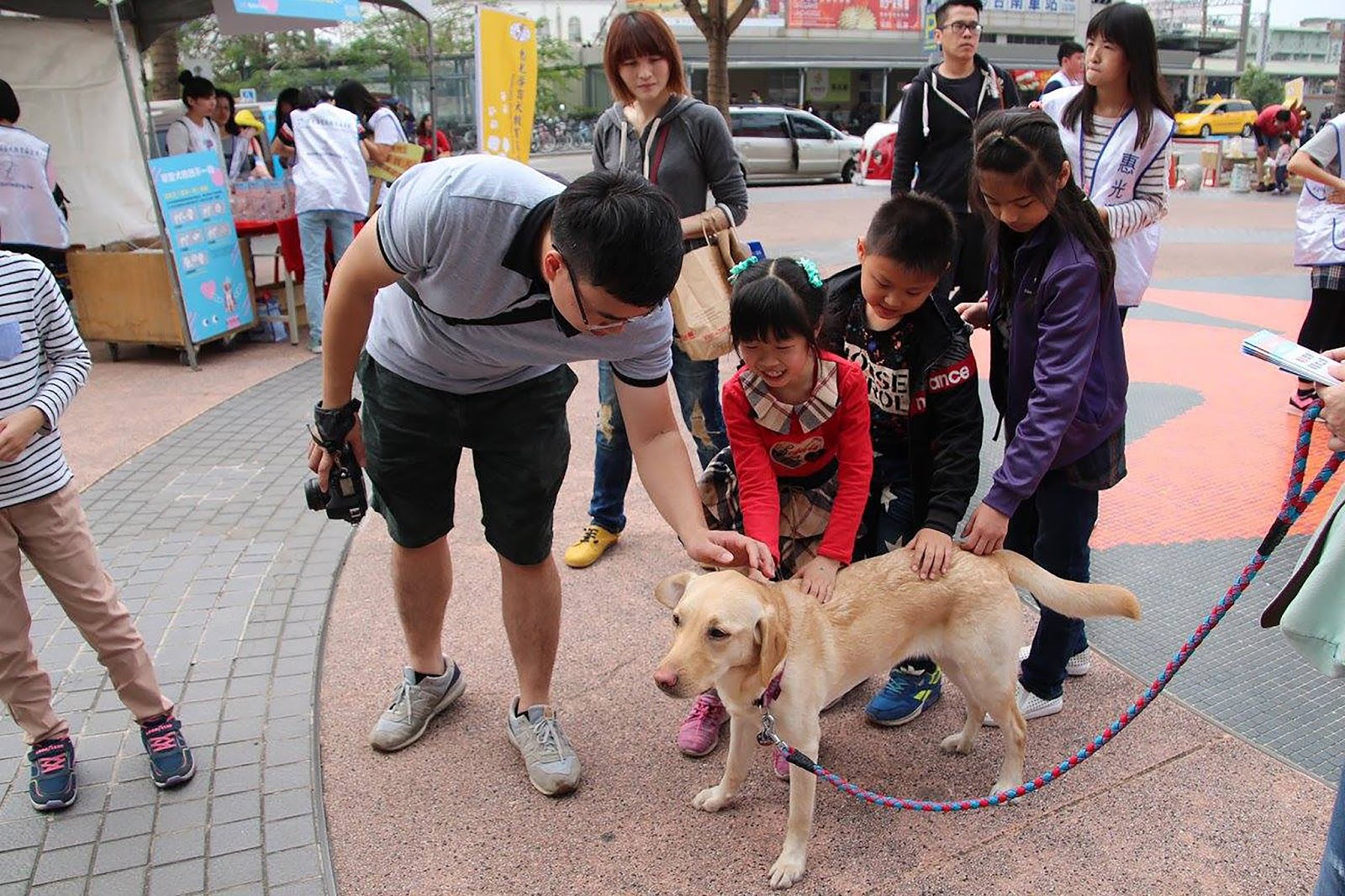 ▲ 民眾可與培訓中的導盲犬近距離觸,圖為導盲犬月三月十八日台南場。