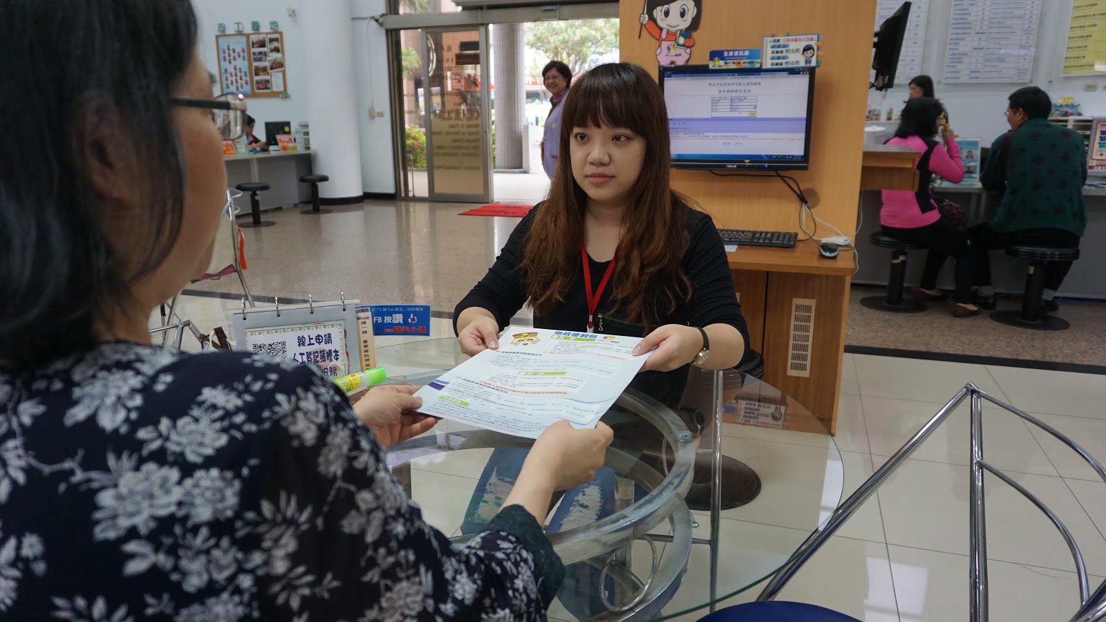 ▲新莊地政所的工作人員正為洽公民眾提供申辦遺產繼承登記的相關文件便利包。