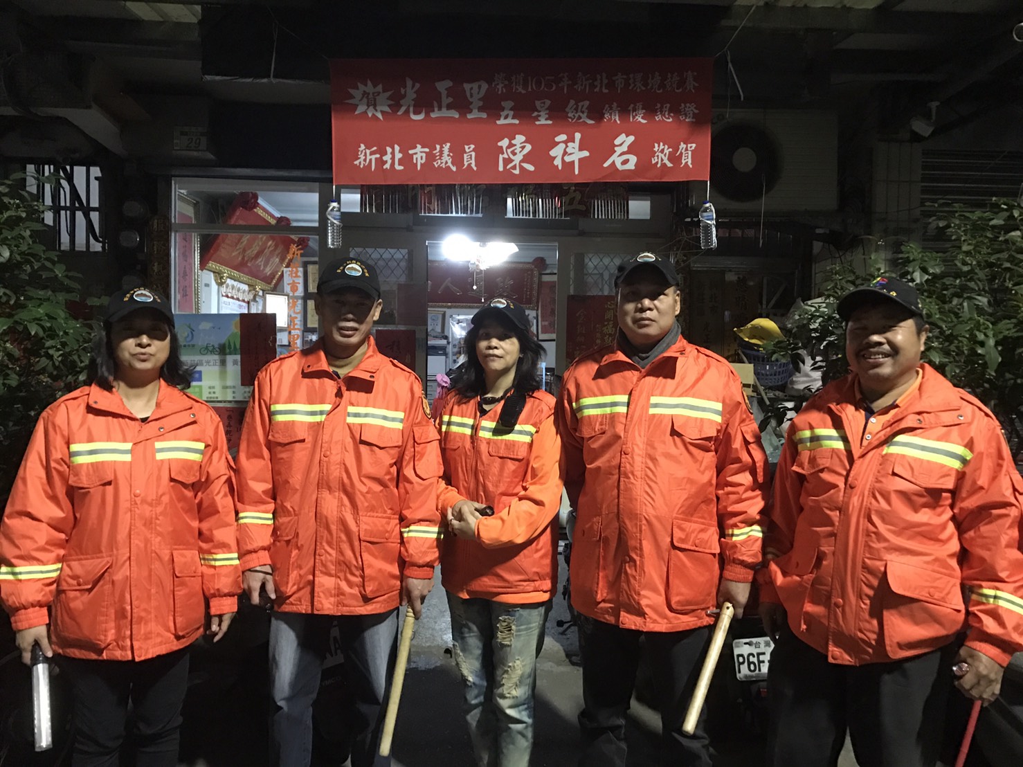 光正里巡守隊由里長陳通助成立,自民國九十八年起,陸續有鄰長和里民自發性加入,共同維護里內夜間安全。目前共四十位巡守隊隊員,更獲得新北市政府一○三、一○四年度「績優守望相助隊」的殊榮。