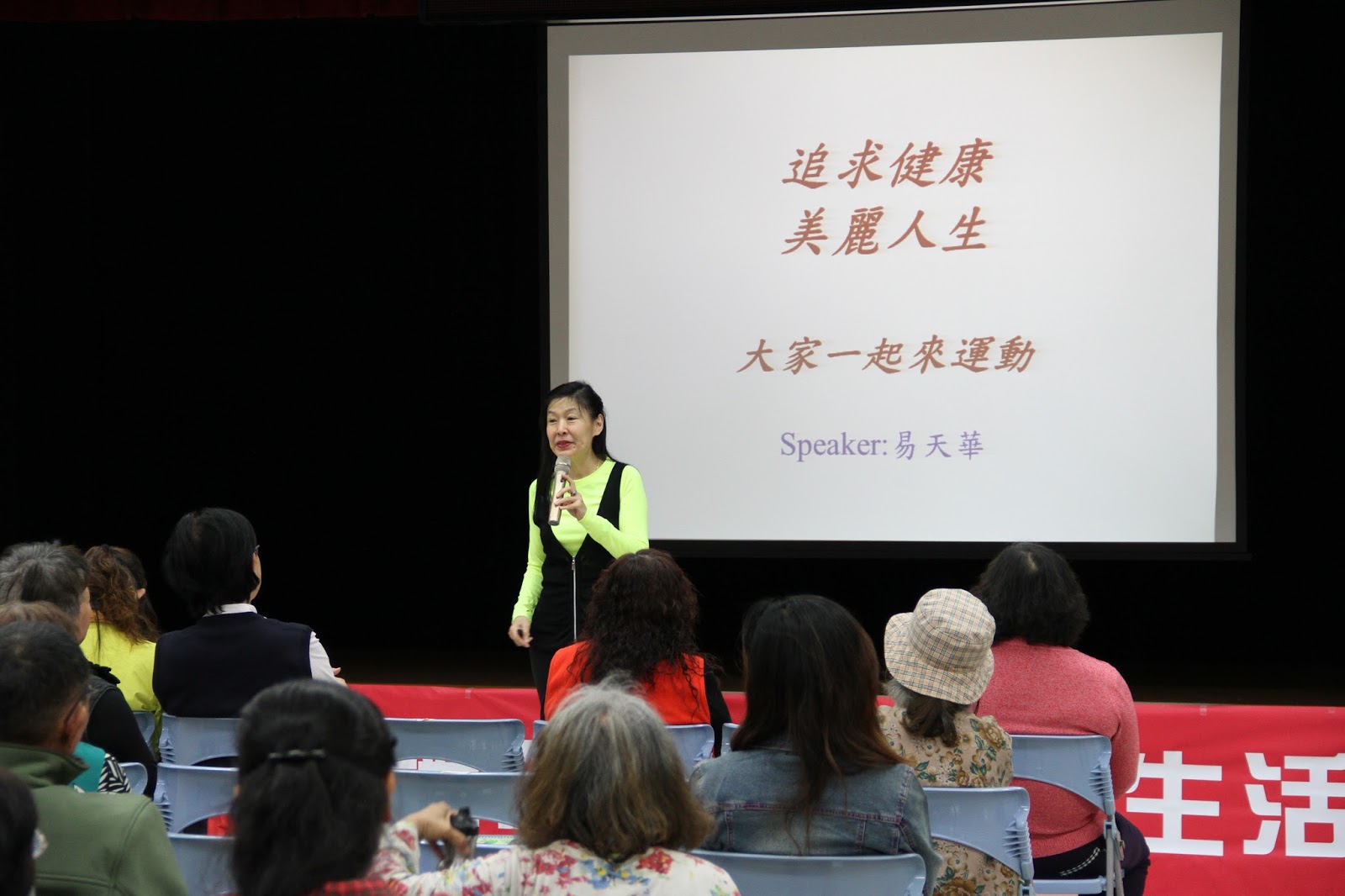 新莊生活講座四月十一日邀請易天華主講「追求健康 美麗人生」,現場並教導大家有氧運動,為自己的健康把關。