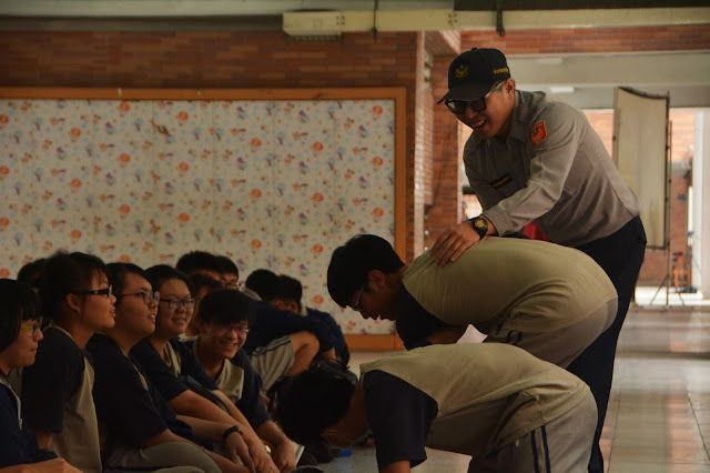 人為災害演練則由中平派出所警員教導學生防身術。最後再由消防隊成員講解輻射、避震介紹及防護逃生的相關知識。