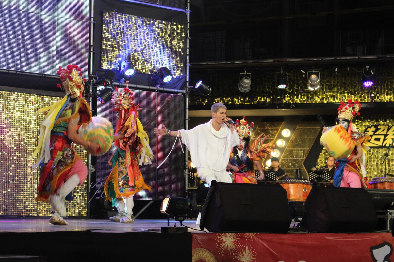 ▲慶祝媽祖誕辰祈福活動,歌手黃維在舞台上賣力演出。