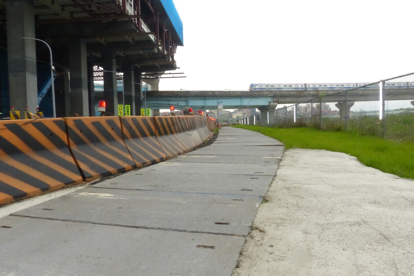 而新北產業園區站出口外新北大道上的一處人行道,由於道路崎嶇不平,許多搭乘機捷的民眾行經此路段拖運行李不易。居民洪雅容小姐說:「這裡離機捷很近,很多人都要拖行李,但因為人行道路面不平,輪子很容易被卡住。而且人行道跟馬路也沒有設斜坡,真的寸步難行。」