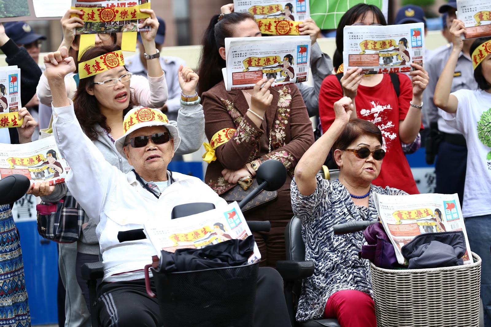 ▲樂生保留自救會與青年樂生聯盟將四月十五日蘋果日報頭版廣告,送入行政院,盼盡速定案大平台方案。