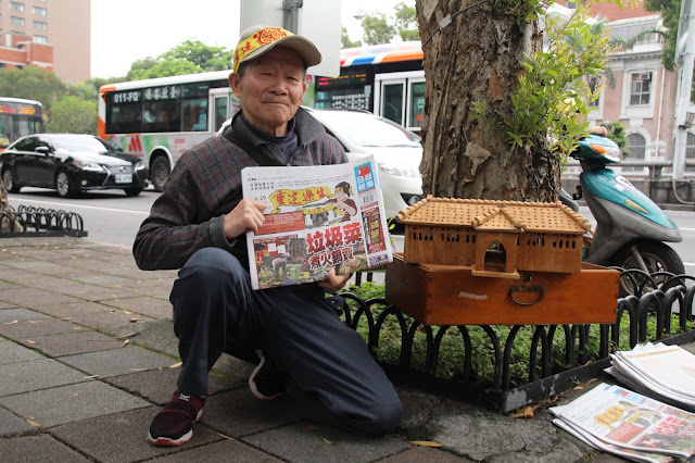 五名院民從樂生舊院區趕往行政院表達訴求,並感謝重建樂生的支持者。院民茆萬枝帶著自己製作的迷你版王字型建築第一進模型到現場,他表示,當初投身製作模型是為了得到更多民眾的支持。