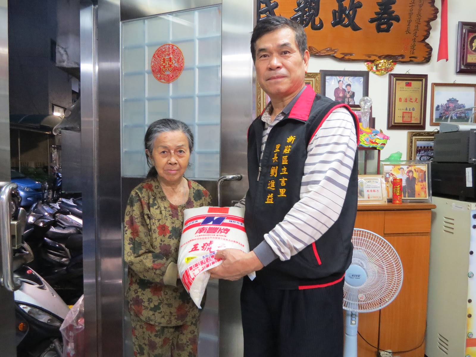 劉進益表示,發放米的第一順位為低收入戶,第二順位為領有殘障手冊的居民。米送來之後,劉進益忙著聯絡居民來領米,馬上就有一位住在隔壁的居民前來。劉進益說,她是外婆撫養孫子的里民。發米的同時,劉進益笑著問里民:「要一包還是兩包?」里民也不貪心,回答說:「一包就夠了。」