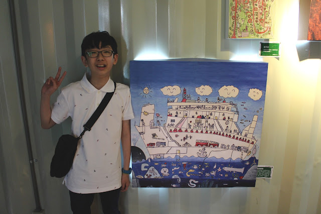 像是本次參展的小畫家黃威翰,從小對交通工具非常感興趣,因此兩歲開始創作,喜歡天馬行空的把火車、汽車、飛機放進繽紛的畫布中,父母也從不糾正,讓他自由發揮。