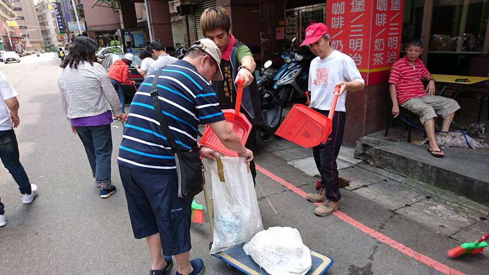 ▲中信里里長桂健興及環保志工隊成員共同打掃里內環境。