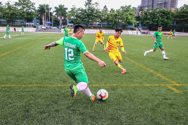 由越南組成的義安隊(黃衣)擊敗同鄉的新莊隊(綠衣)勇奪「2018國際移工足球賽」冠軍。