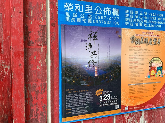榮和里佈告欄張貼了禪淨共修祈福大會的海報。