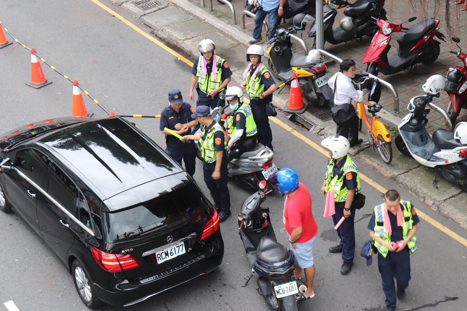 雖然兩車擦撞,但機車騎士和賓士駕駛都毫髮無傷,賓士駕駛也無追究之意。但因發生意外,交警還是得完成核對證件等程序,導致原已實施交通管制的道路更為壅擠,後面車輛難以通行,交通更加阻塞。
