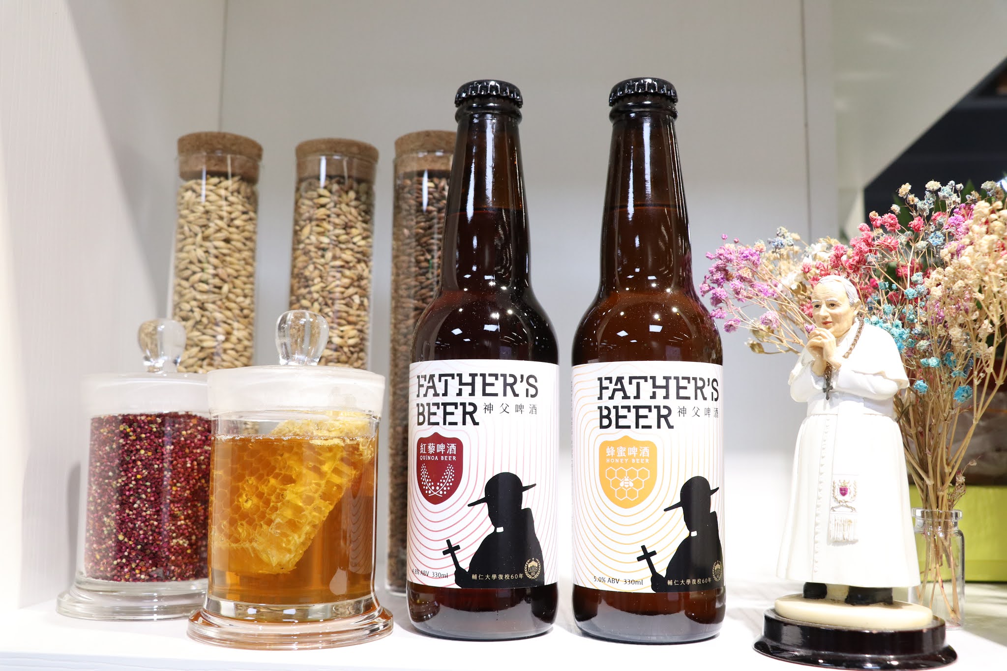 【圖與文/吳旻諼】輔仁大學民生學院研發「神父啤酒」,於11月20日舉辦產品發表會,此為全台目前唯一由學院創立的啤酒品牌。運用台灣在地無汙染食材,研製出紅藜和蜂蜜口味精釀啤酒,並且以神父作為命名的發想,用Father’s Beer為啤酒命名,感謝神父對輔大的奉獻,帶出輔大天主教學校的精神。