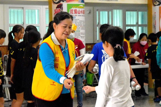 讀經團志工擔任關主與學生互動,熱心參與闖關活動。