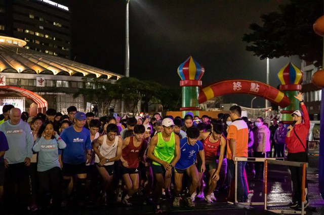 【攝影記者林澤衛採訪報導】在輔仁大學的聖誕燈飾下,千人在寒冷的夜晚奔跑五公里。學生們帶著聖誕帽、打扮成聖誕老人到場參與,路上不時傳來工作人員對參與者的熱心鼓勵:「加油」。