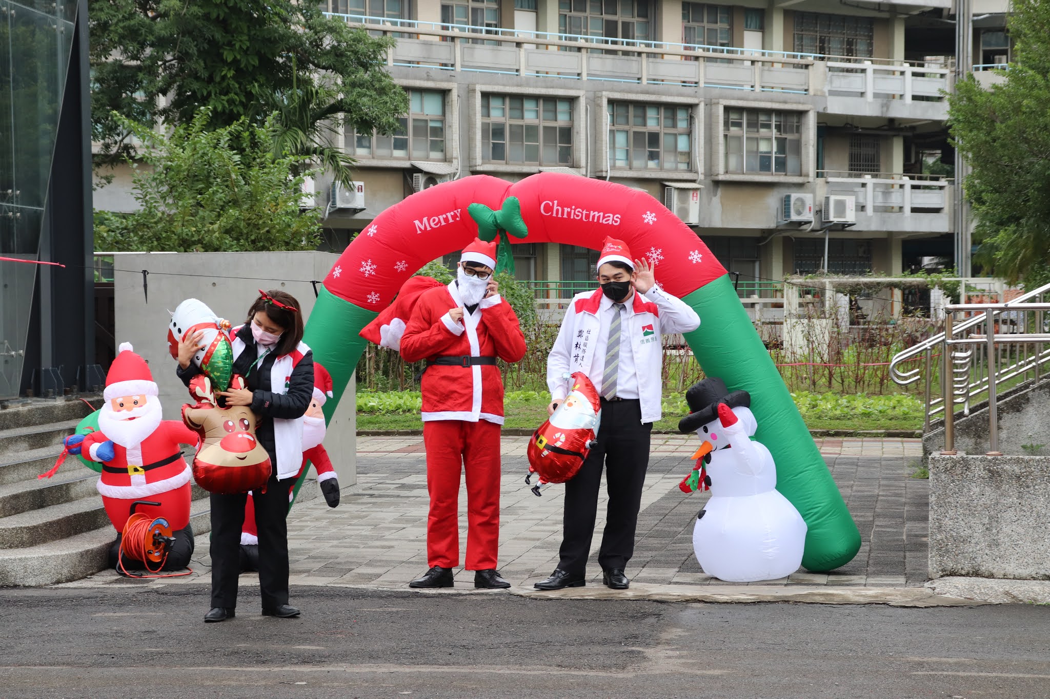 信義房屋店員扮成聖誕老公公發送聖誕禮物。