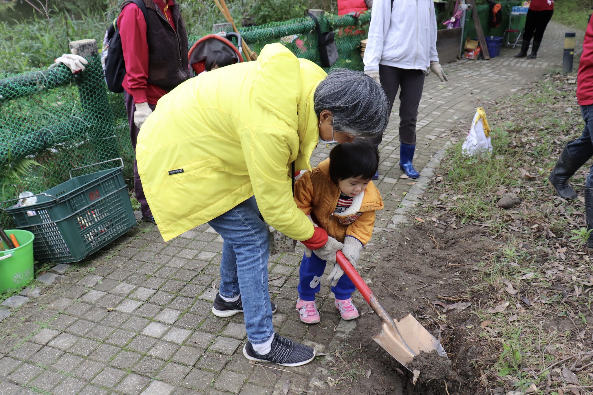 大小朋友一起體驗堆疊護石圈。