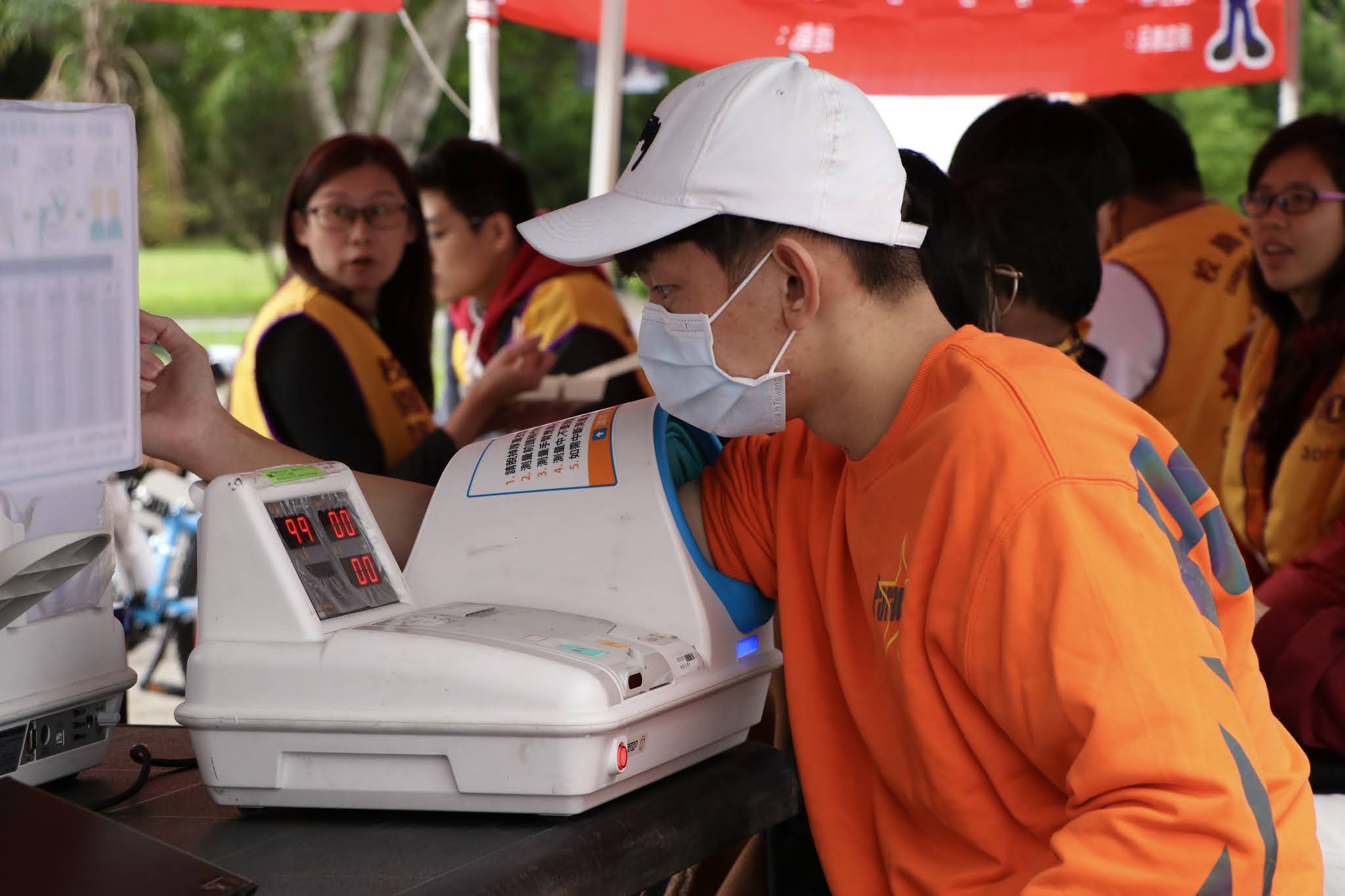 | 正在量測血壓等待捐血的學生