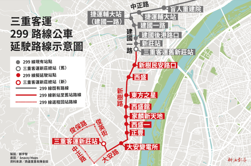 完成延駛的規劃後,三重客運299路線公車新增的服務範圍,不僅涵蓋新泰綜合醫院、新莊勞工中心等多項公共設施,更擴及樹林圳安里,使樹林與西盛里居民往返新莊、臺北市區,多了一條新選擇。