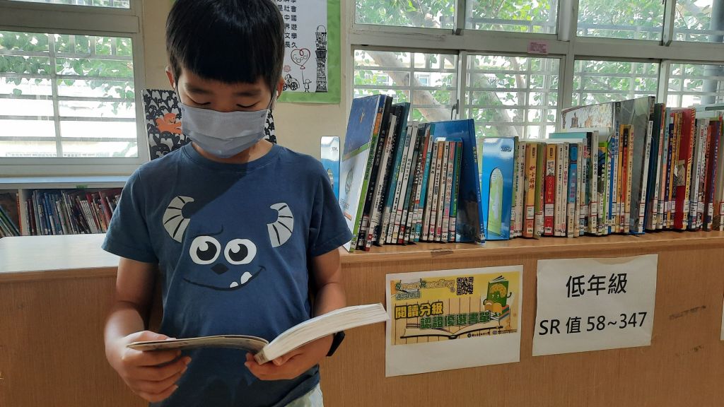 中港國小會將SR推薦書單上學校已有的書籍找出來,再根據閱讀能力級數標示擺放,讓學生能更快找到自己能力區間的適性書籍。學校也致力於補齊書單內所有的書籍。