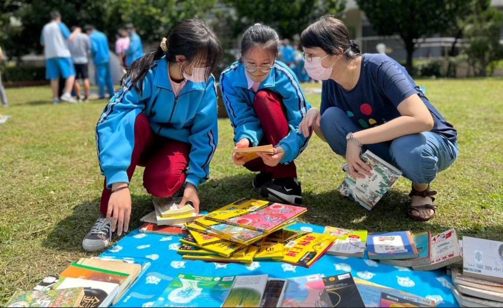 李岳庭除了感謝曬書日當天天公作美,也提到師生的反應都十分熱絡,看著學生抱走一大疊的書,讓他感受到這個活動對喜愛閱讀的孩子真是一大福音。他也笑說有老師反饋活動在草地上舉行,加上帳篷、木箱的擺置,很有露營的氛圍。