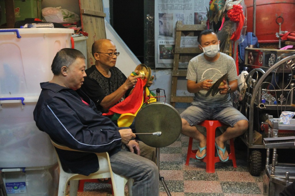 在新樂園館,裡面隨處可見古董文物,走上二樓可以看到兩排肅穆的大仙尪仔,有兩尊甚至已近百年,幾乎是一個小型的傳統文化博物館。「以前的新莊老街都是這些傳統戲曲,像是布袋戲、歌仔戲、南北管都有。」新樂園團長楊乾德說,北管會出現在各大重要的場合,像是結婚、喪事、廟街出陣,都有北管的身影。但是隨著時代發展,西方音樂傳入台灣,民眾有了不同的選擇後,這些傳統戲曲逐漸凋零,漸漸退出新莊老街的舞台。