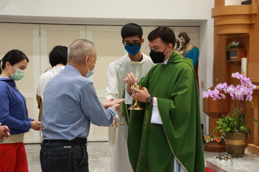 教友排隊領取聖體的畫面。攝影/陳韋彤