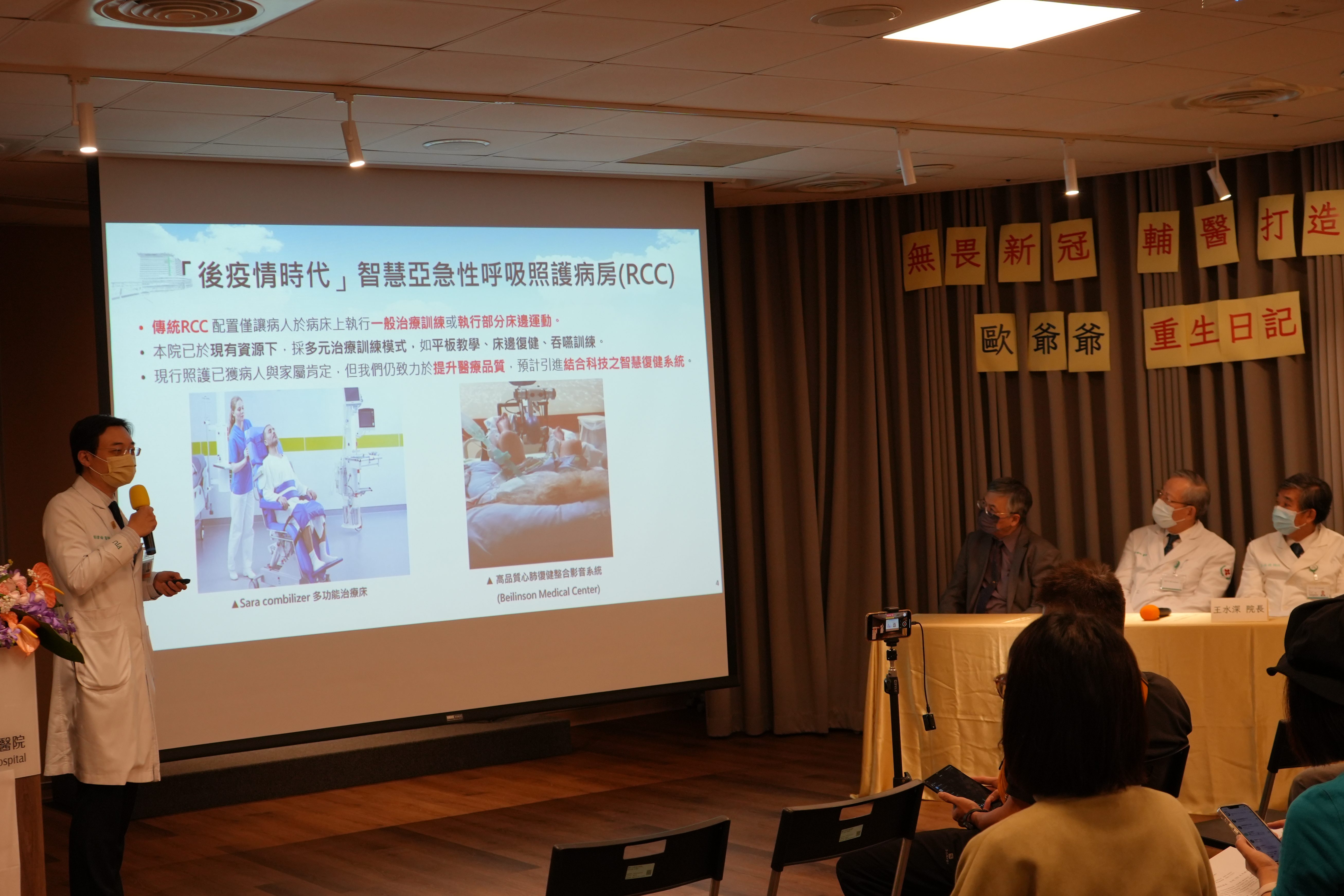輔大醫院呼吸重症組呼吸治療師王雅萱,分享促成輔大醫院著手規劃RCC的主因。二〇二一年五月中旬,全台灣宣佈三級警戒,確診人數攀升,歲數高達八十一歲的歐爺爺,因陪伴妻子至醫院洗腎的緣故,意外確診並進入輔大醫院治療。歐爺爺出現呼吸困難及衰竭的情形,需要呼吸器輔助才能維持呼吸功能,中間也發出了多次病危通知,最後有驚無險,透過手術脫離危機,並進行後續的復健。