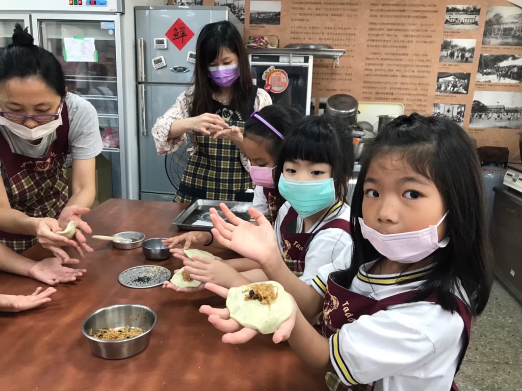學生們在烹飪教室製作草仔粿。 李偉琪提供
