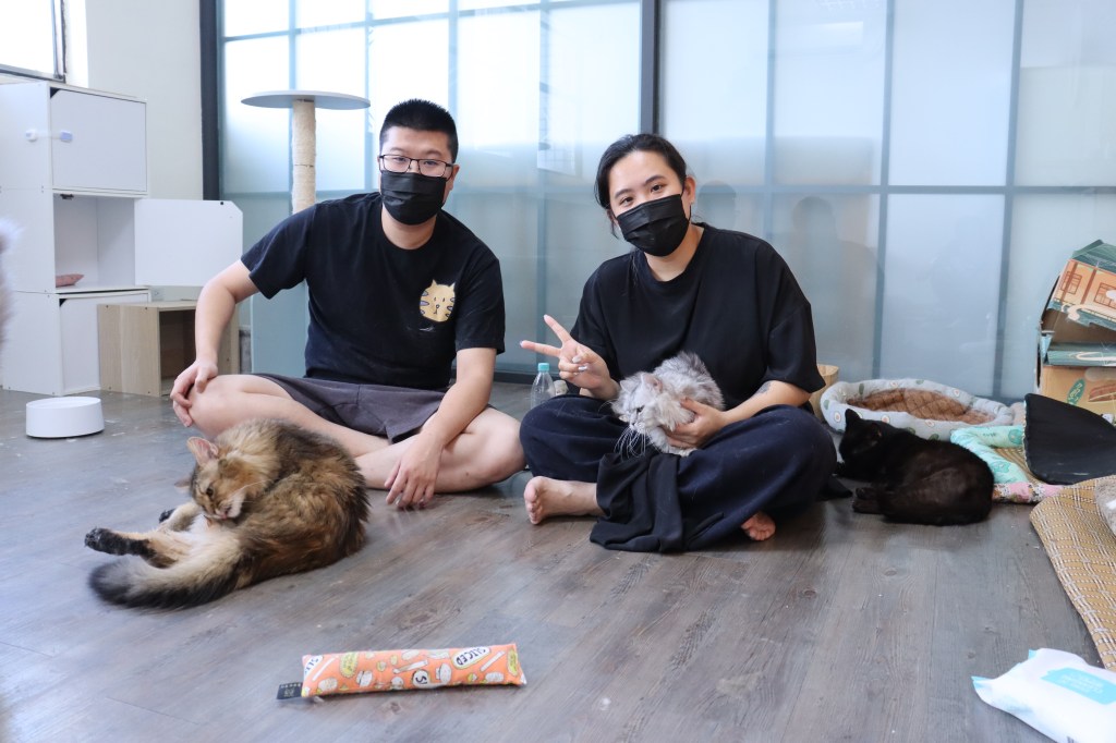 歐大維及洪心怡將貓咪放置貓房協助照顧。攝影/吳晟瑋