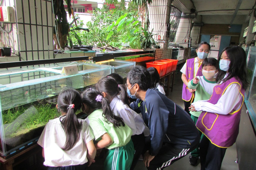 水生走廊的魚缸超過一百個,照顧起來有些吃力,因此想讓小朋友共同參與,原生魚類守護小天使社團因此誕生。考慮到學生理解力以及社團施行效果,以招收五年級的學生為主,剛開始會教導對原生魚的基本知識,包含原生魚的定義、棲息場所、生活習性等,及相關保育的議題。接著讓學生了解該如何照顧水生魚,不單是餵飼料,要讓魚維持生命、魚缸的維護,水質及過濾器的保持都含括在內。