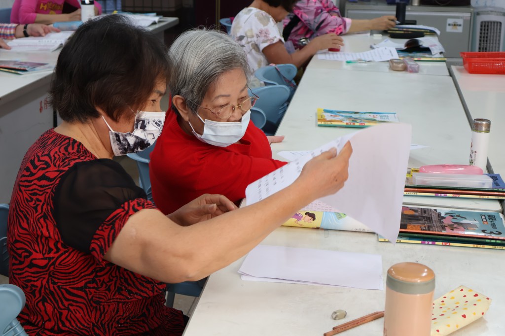 這群阿嬤平時已經不太需要帶孩子,也因此更有時間回歸課堂。成教班的氣氛融洽,偶爾也會閒話家常、聊聊彼此的過往。黃鳳秋認為,識字班讓學生們的生活能更有目標,阿嬤們也會因為簡單的誇獎「字寫得很漂亮」而開心很久,因此她們也會積極地展示自己在甲乙本上認真書寫的文字。她表示教長輩和教小孩其實有點類似,成教班的學生吸收知識的速度已大不如前,所以需要更多的耐心和時間。持續的鼓勵和陪伴才更能幫助學生進步,去學會辨別和書寫更多文字。
