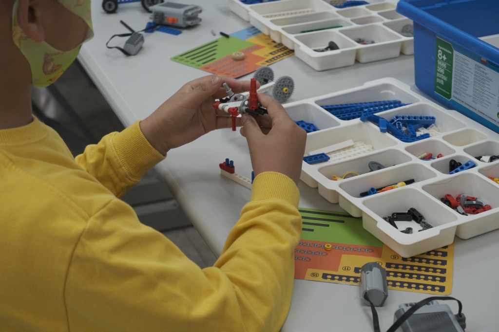 【記者蘇亮穎報導】在新莊丹鳳活動中心的才藝教室裡,有一群小朋友正在動手玩樂高。他們利用樂高組建成傳動機械,最後成為可自動旋轉的萬向傳動軸。這是由EBOT積木機器人教室所組織的課程,老師們大部分都是工程師,利用假日休息時間帶領小朋友們組裝積木,腦力激盪培養創造力。