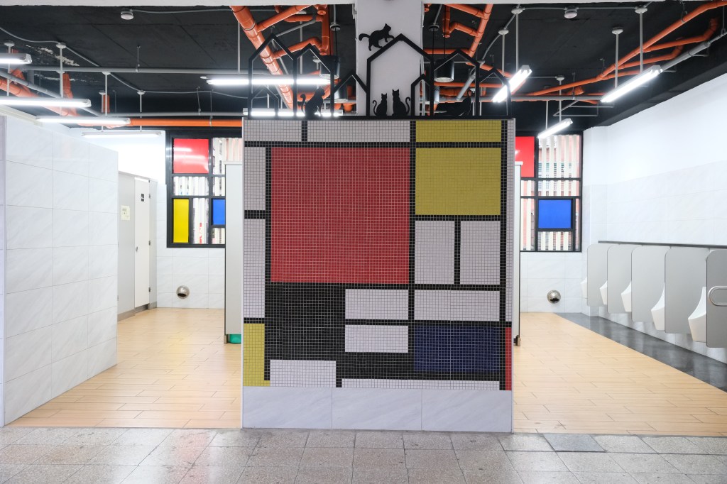 新莊區昌隆國小聚賢樓廁所修繕計畫於民國一〇九年完工,校方請美術老師蔡秀佳發想與美術教育相關的靈感進行廁所重建設計,蔡秀佳以蒙德里安的抽象畫作品〈百老匯爵士樂〉、〈紅、黃、黑、灰、藍組合〉及〈紅、黃、藍的構成〉構思,使用馬賽克磁磚為材質,將藝術大師的作品概念由繁到簡進入校園,並設置作品解說看板,將廁所改建為具簡約美學、繽紛色彩的學習場域。蔡秀佳說明,她以蒙德里安的作品融入新莊在都市更新後「垂直水平」的街道意象,將作品在地化,更貼近學童們的生活。