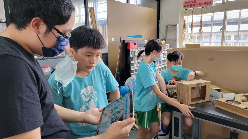 中港科學創客社團於民國一〇六年成立,主要招收四到六年級的學生。在這裡的社員,個個都有天馬行空的「超能力」,從寫程式、拼裝再到修正,每一個環節都讓他們自己親手做。中港科學創客社團的指導老師洪偉翔說,學生做得好或是不好,老師們都不會直接指出問題,或是告訴他們要如何修改,而是以互動性的方式,讓學生自己發現問題,從而去思考如何修正。