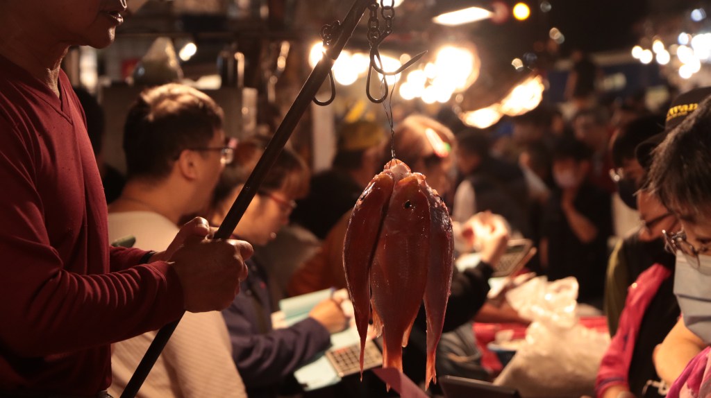 【記者沈郁芯、曾若菱專題報導】夜幕低垂,行口裡一場又一場繁忙的交易陸續展開。果菜批發市場的批發中心拍賣員開始高聲呼喊,引領競拍的節奏。夜半時分,位於基隆崁仔頂的漁貨批發處,在糶手們一個個宏亮的聲音下,揭開夜晚的拍賣場序幕。獨特的行口景象,是每一位攤主除了市場之外,另一處重要的工作場域。