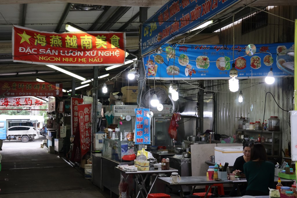 在美秀市場入口處,可以看見越籍新娘阮氏甘經營的蔬菜攤販賣朝天椒、小蛋茄等越南特色香料。由此往後延伸,有三間販賣著河粉、米線、春捲等越南當地料理的店鋪。異國的文字看板、菜單,以及桌上擺放的越式便當、腸粉,這是由來到台灣二十年的越籍移民黎氏海燕所經營的「海燕越南美食」。黎氏海燕說,她剛來到市場時,和丈夫一起賣菜,後來發現這一帶常有新住民前來,但卻缺乏屬於自己家鄉味的料理,於是毅然決然在美秀市場開設了一家屬於自己的越南料理店。