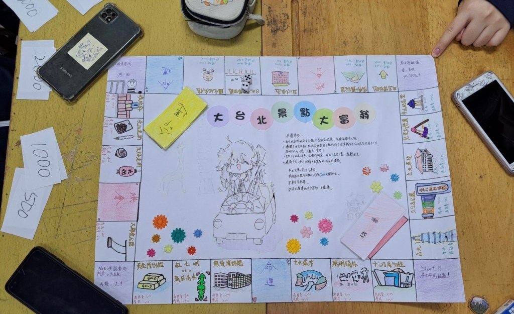 新莊學課程,同學製作新北特色大富翁。劉耀仁提供