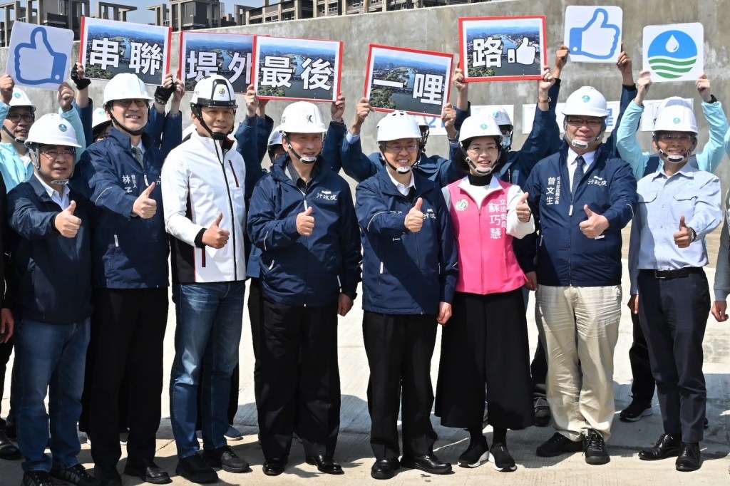 行政院長陳建仁(右四)、立委蘇巧慧(右三)等人視察堤外道路。轉載自行政院全球資訊網